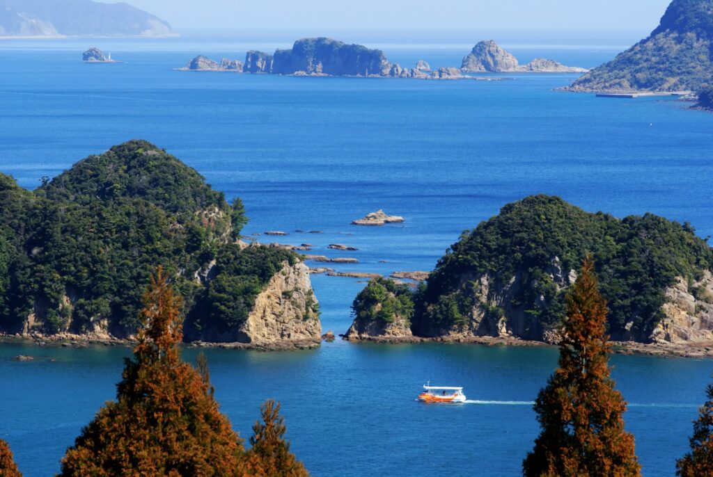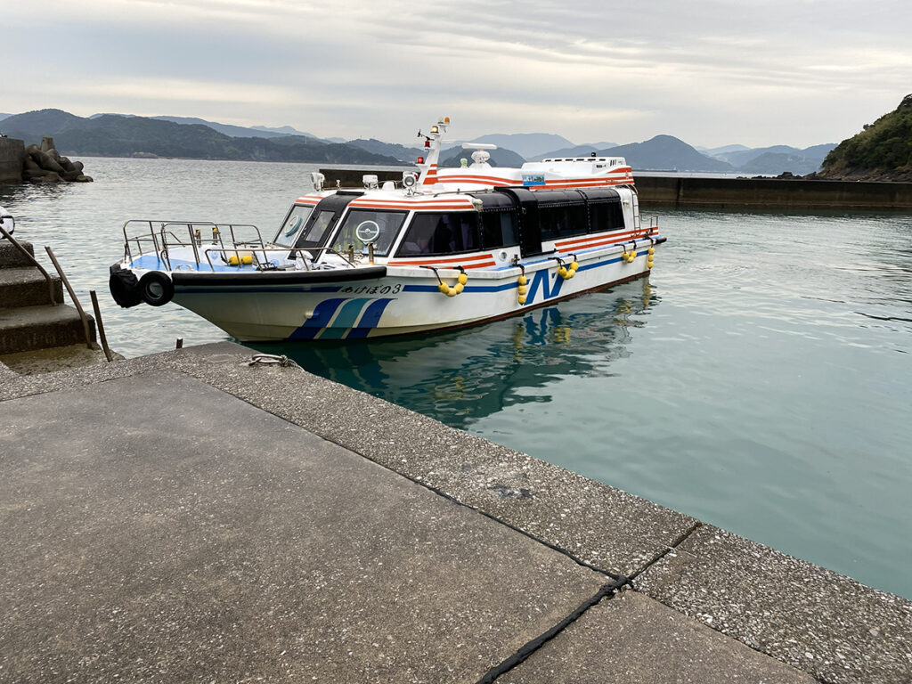 港の駅めいつがある目井津港から旅客船に乗って約15分で行けます。